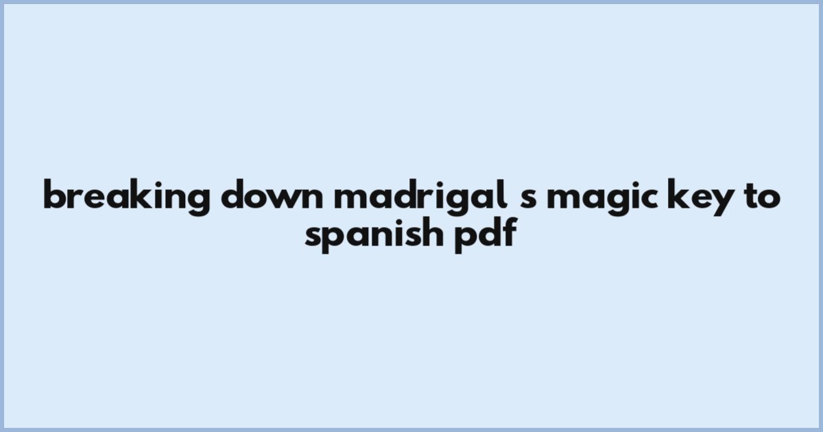 Breaking Down Madrigal's Magic Key To Spanish Pdf