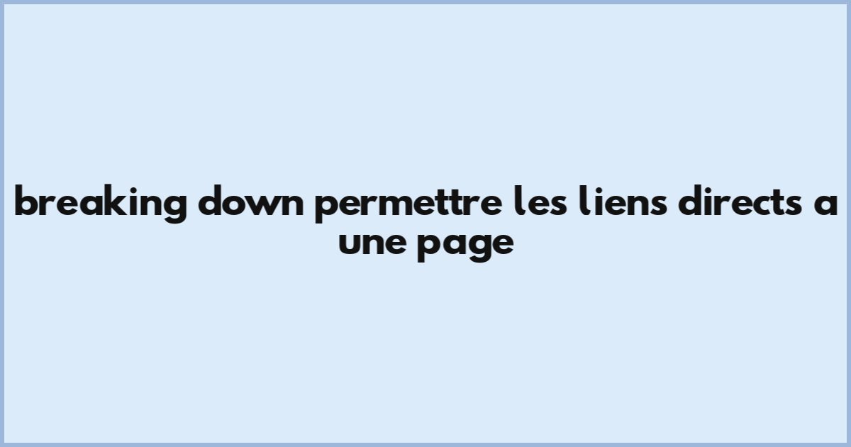 Breaking Down Permettre Les Liens Directs À Une Page
