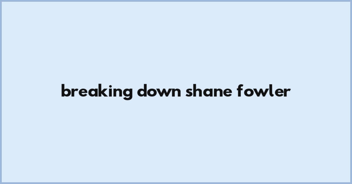 Breaking Down Shane Fowler