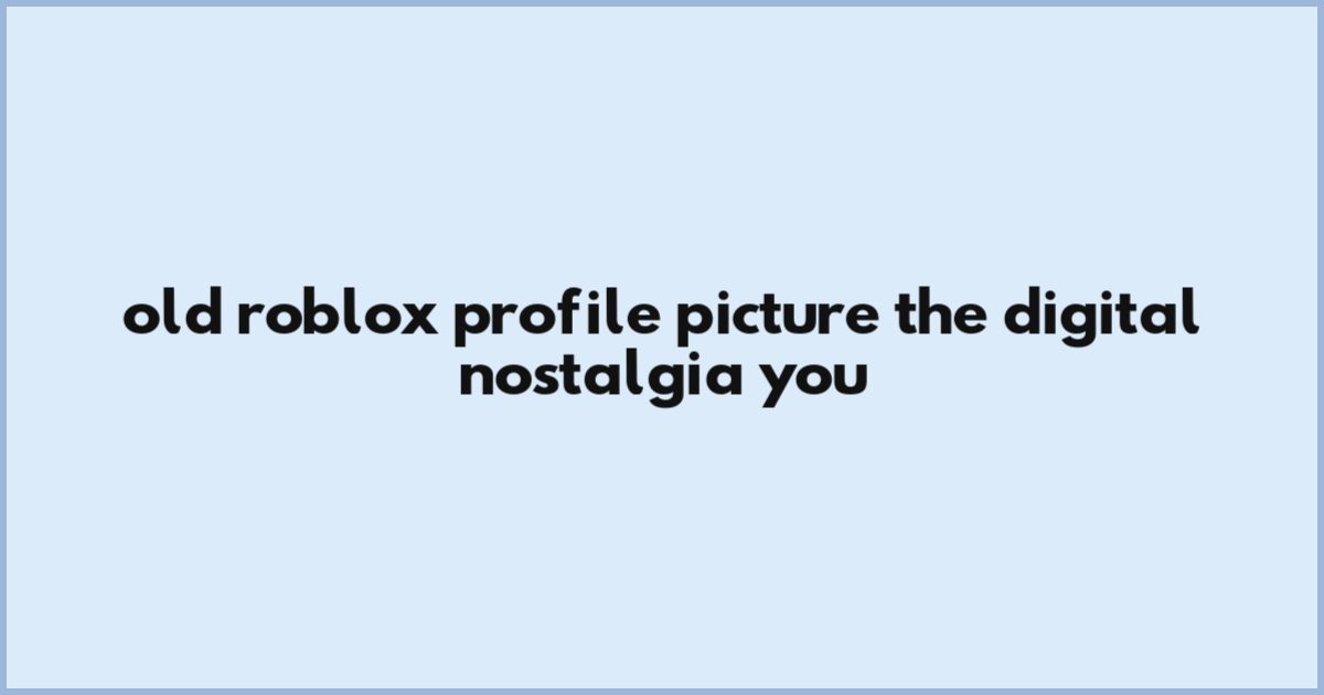 Old Roblox Profile Picture: The Digital Nostalgia You