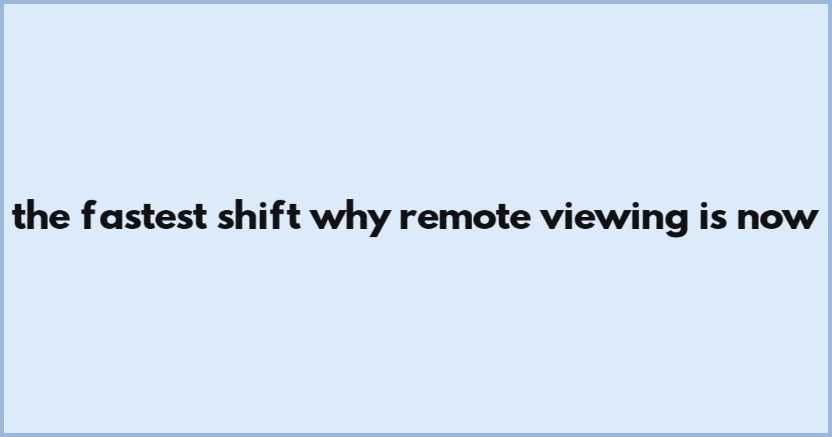 The Fastest Shift: Why Remote Viewing is Now Inescapable