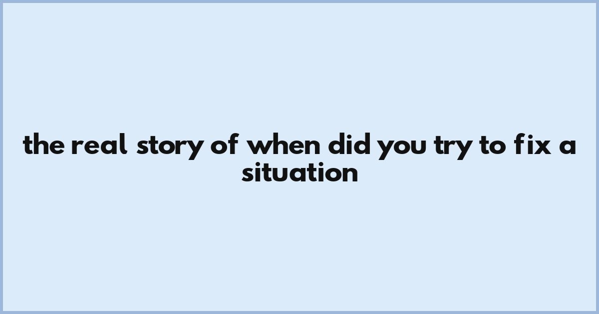 The Real Story Of When Did You Try To Fix A Situation
